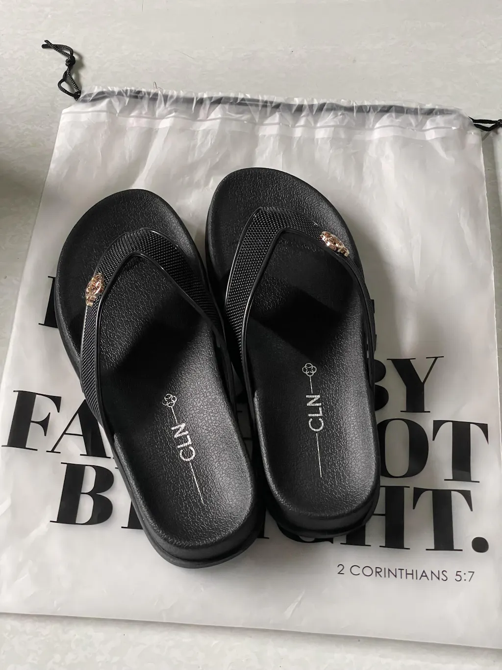 Thong with buckle flat slides